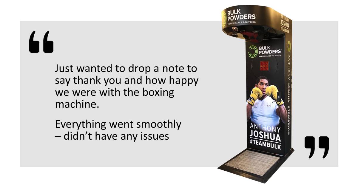 Another fantastic advertisement for Bulk Powders was their custom boxing machine that featured Boxer, Anthony Joshua. This was featured at the Body Power Experience and guests loved having a go. It was an instant hit everybody loved the competition of seeing if they could beat the high score. What’s more, Bulk Powders used it as a chance to advertise their brand, with their own hashtags and branding features on the boxing machine.